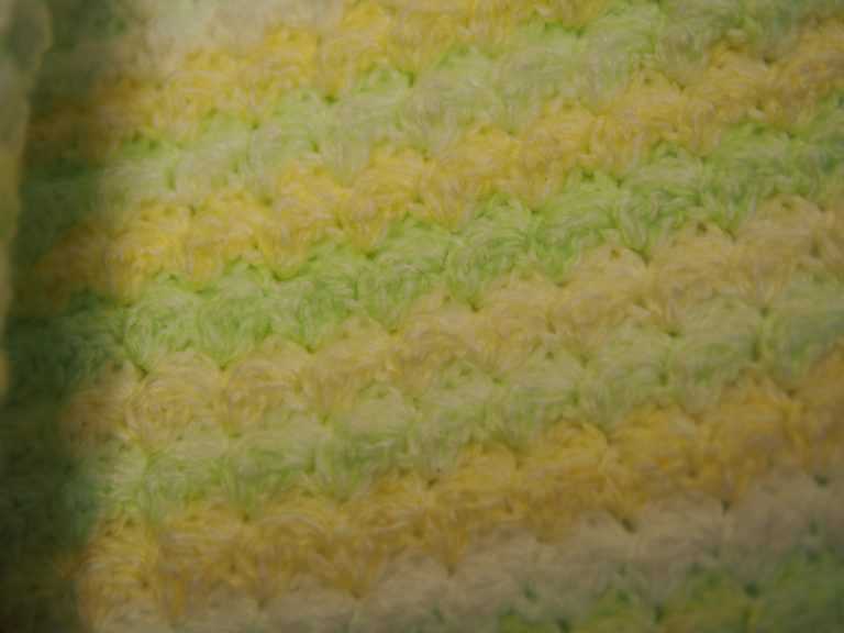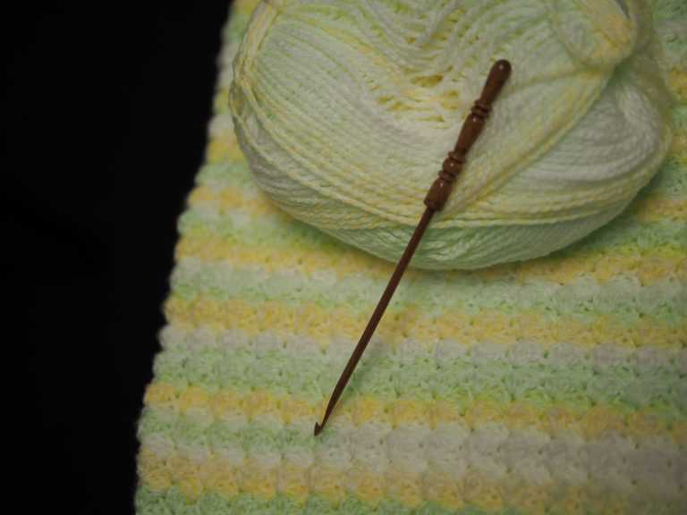 Then baby M came home. I first decided to make the ‘Fluffy Clouds Baby blanket’ – https://mylittlecitygirl.com/2010/05/fluffy-clouds-blanket-pattern-for-sell/ bought the pattern too. The pattern is very pretty, but the picots took too much time and yarn. Looking online, I came across this link to a very easy and pretty stitch – blanket stitch at https://www.crochetspot.com/how-to-crochet-blanket-stitch/. So now, my blanket is being made using this blanket stitch.