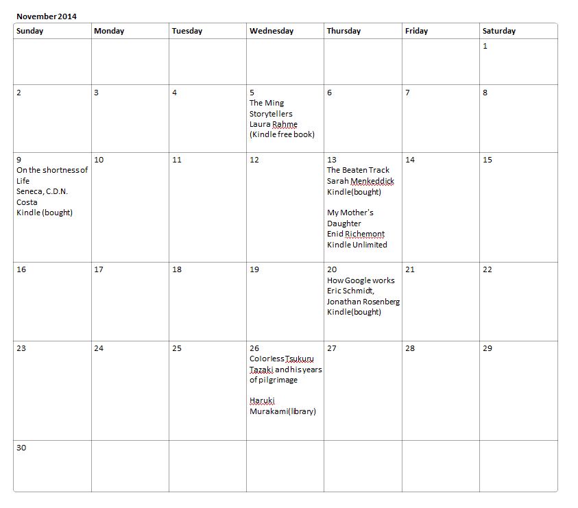 Here is my reading Log from November 2014. I didn’t read much last month, but read some really nice books. I really enjoyed these three: