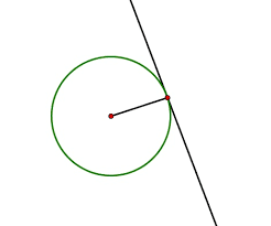A tangent is a line which meets a circle at one point and one point only – the poignant point of tangency, and never ever meets the circle again, even if extended.